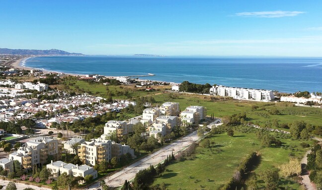 900 meter van het strand en aan golfresort gelegen Ibiza stijl begane grond appartementen met 2 of 3 slaapkamers